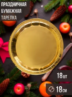 Тарелки одноразовые золотой металлик 18 см 18 шт