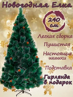 Елка новогодняя 240 см искусственная с шишками и гирляндой