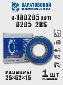 Подшипник 6205 2RS, 6205RS, стиральной машины