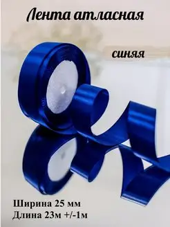 Лента атласная синяя для упаковки 25мм