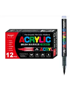 Набор акриловых маркеров (кисть) 12 чёрных цветов