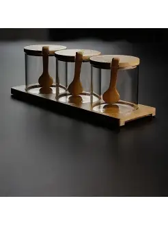 Наборы для специй из стекла и бамбука Стеклянный набор для с…