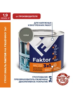 Грунт-эмаль по ржавчине 3 в 1 серая, банка 1,9 кг