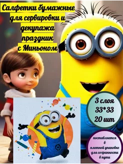 Салфетки для сервировки и декупажа праздник с Миньоном