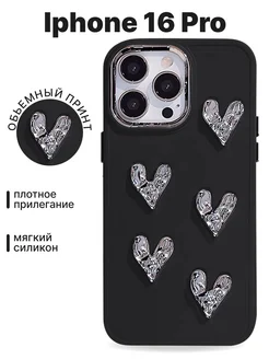 Чехол на iphone 16 Pro силиконовый объемный с сердечками