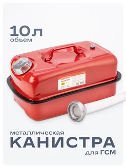 Канистра металлическая 10л горизонтальная с лейкой