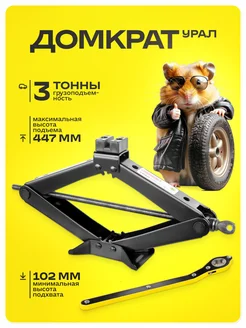 Домкрат механический ромбический УРАЛ 3т 95-440 с трещоткой