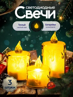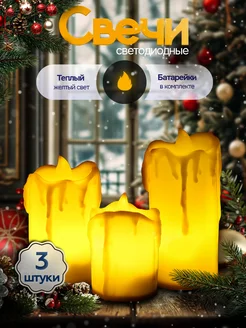 Свечи новогодние светодиодные на батарейках набор 3 штуки