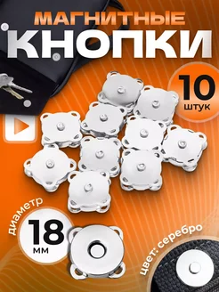 Кнопки пришивные для одежды магнитные 10 шт 18мм серебро