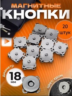 Кнопки пришивные для одежды магнитные 20 шт 18мм серебро