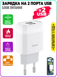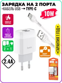 Зарядка для смартфона USB Type-C,2 порта,блок + кабель 1м