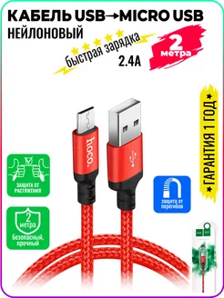 Кабель для телефона microUSB,нейлоновый,длинный 2 метра