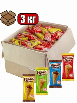 Конфеты РОЖОК ВАФЕЛЬНЫЙ вкус сгущ молока и шоколада, 3 кг