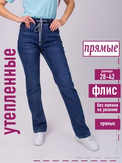 Прямые утепленные джинсы с флисом синего цвета