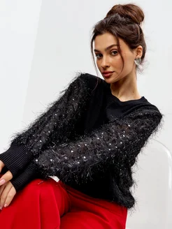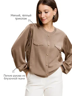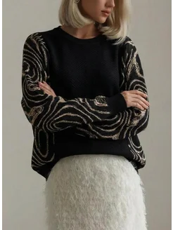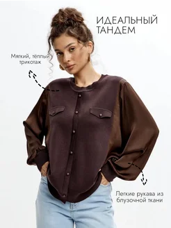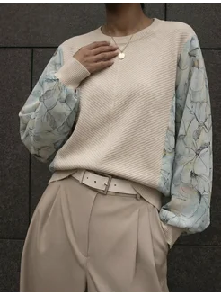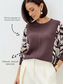 Джемпер из трикотажа с рукавом из блузочной ткани
