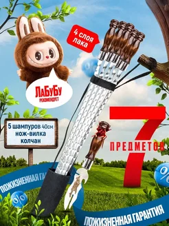 Шампуры с деревянной ручкой 5 шт и нож в колчане