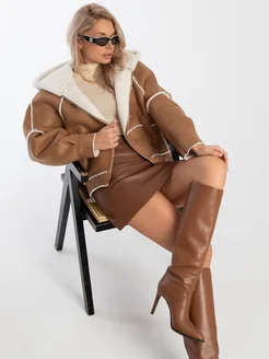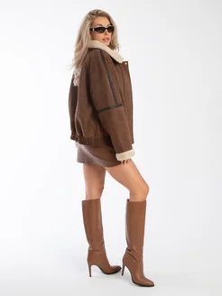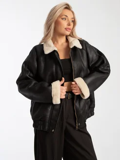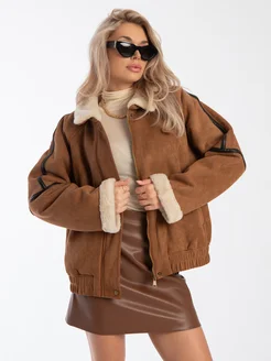 Джинсовая куртка с мехом оверсайз с капюшоном