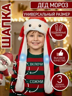 Шапочка светодиодная с двигающимися ушками Дед Мороз