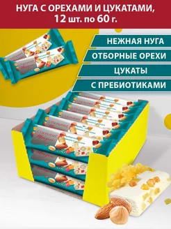 Конфета-батончик нуга с орехами и цукатами, 12шт. по 60г