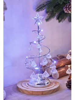 Елка декоративная серебристая с подсветкой 19 см