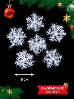 Снежинки новогодние на елку и костюм 30 шт 6 см