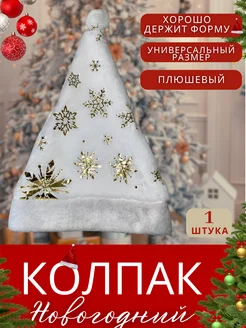 Новогодний Колпак Деда Мороза, белый - плюшевый, 1 штука