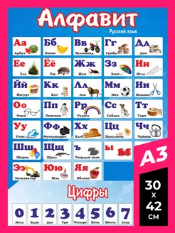 Плакат постер с русским алфавитом и азбукой Алфавит и цифры