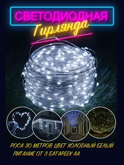 Гирлянда роса 30 метров на батарейках