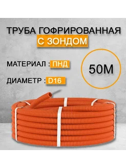 Труба гофрированная ПНД D16 мм 50 метров Цвет Оранжевая