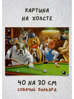 Картина на холсте в арт "Собачий бильярд" 30х40