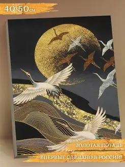 Полет журавлей Картина по номерам с поталью 40х50