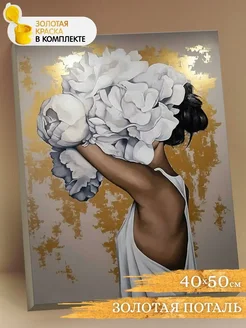 Девушка с цветами Картина по номерам с поталью 40х50