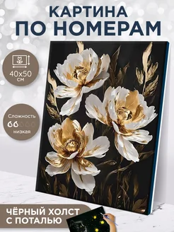 Белые пионы Картина по номерам на холсте с поталью 40х50