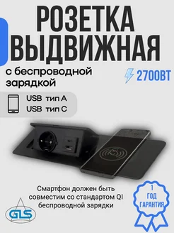 Выдвижная розетка с беспроводной зарядкой и USB A + C