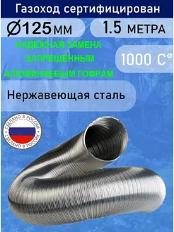 Гофрированный газоход 1,5м D125мм сталь (жаропрочный)
