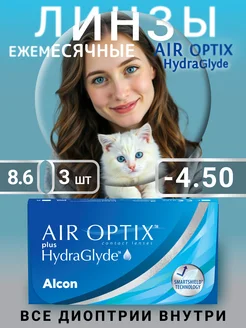 Контактные линзы Air Optix plus HydraGlyde 3 шт -4.50