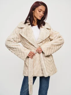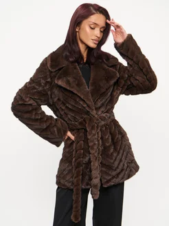Шуба искусственная под норку с поясом