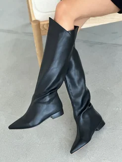 Сапоги трубы демисезонные на толстой подошве с ремешками