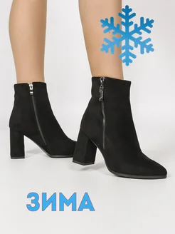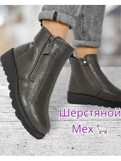 Ботинки женские зимние с мехом кожаные короткие на молнии