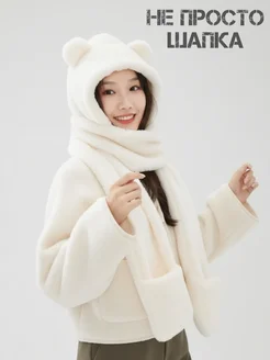 Шапка зайка с ушками, шарфом и варежками плюшевая