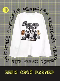 Лонгслив оверсайз футболка длинный рукав котики Y2k