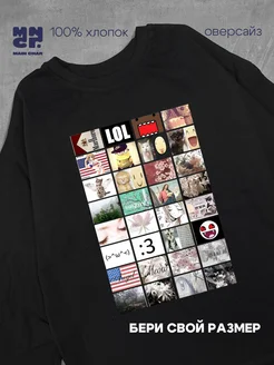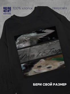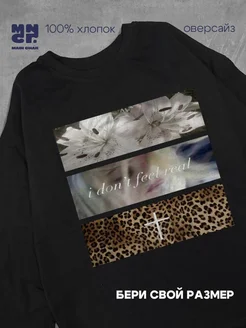 Лонгслив оверсайз с принтом хлопок удлиненная