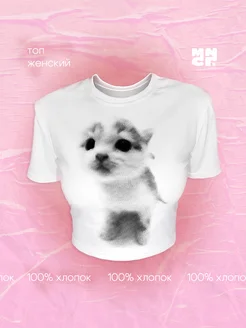 Топ укороченный с принтом милый котик
