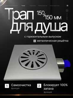 Душевой трап BAD021502 с горизонтальным выпуском 150х150 мм