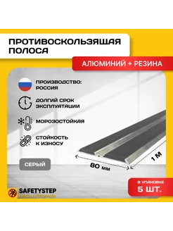 Алюминиевая полоса-порог с 2 резиновыми вставками, 1м, 5 шт