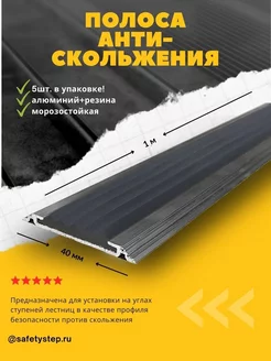 Алюминиевая полоса порог 40ммх4мм с резин вставкой, 1м, 5 шт