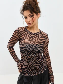 Лонгслив облегающий прозрачный с принтом