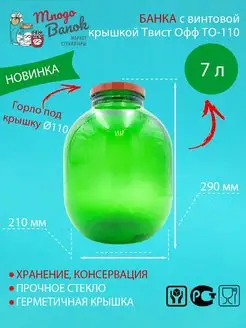 Банка 7 литров с широким горлом ТВИСТ ОФФ ТО-110 зеленая