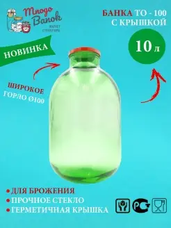 Банка стекло 10 литров СКО-82 с гидрокрышкой для брожения