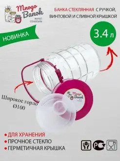 Банка стекло 3.4л с крышкой и крышкой для слива для хранения